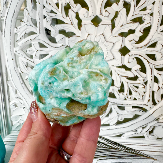 Karibiskt blå aragonit (Carribean blue kalcit), rå naturlig form