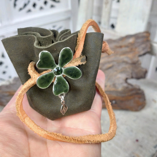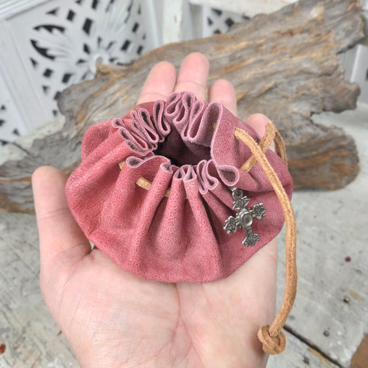 SlutsåldHandgjord skinnpåse veckad design