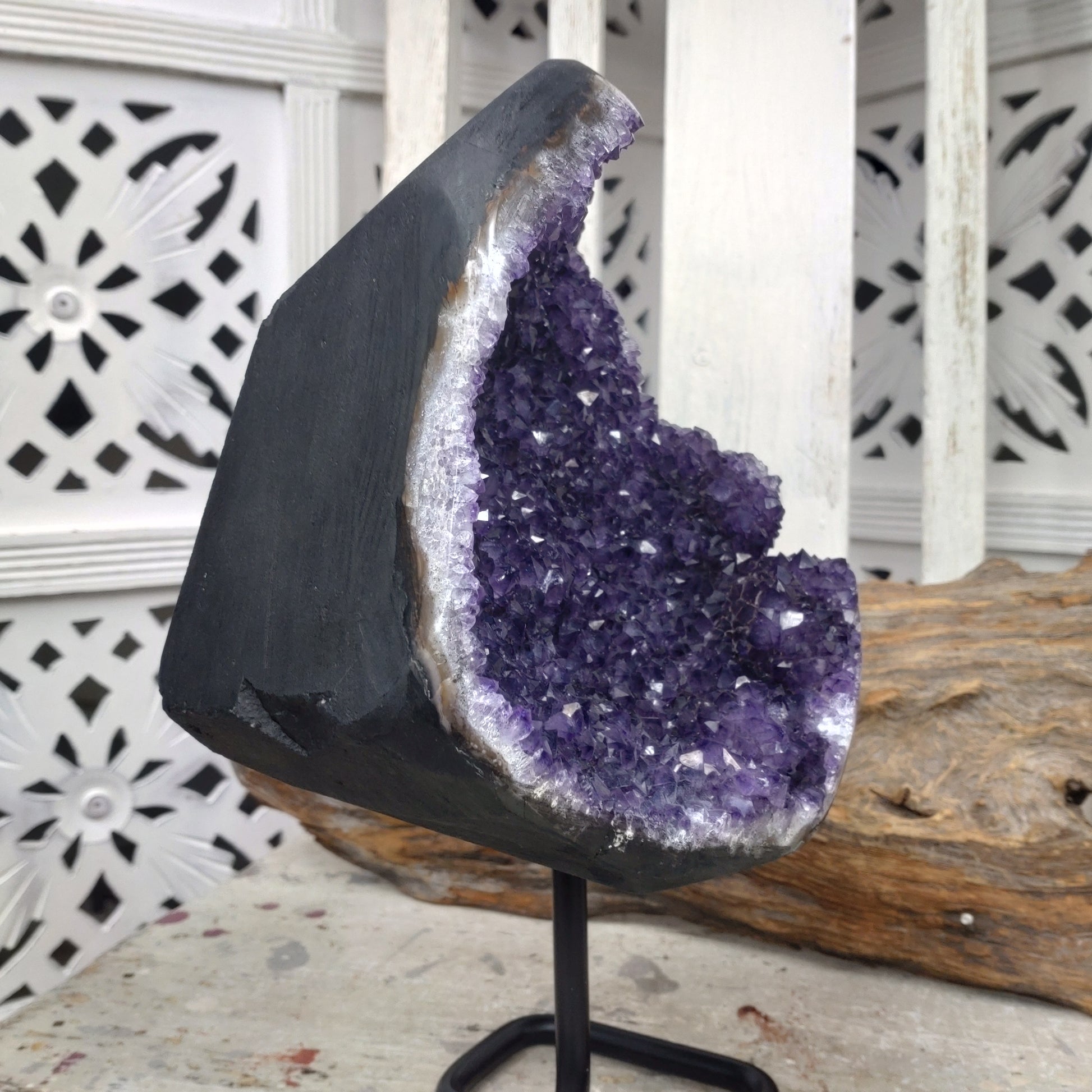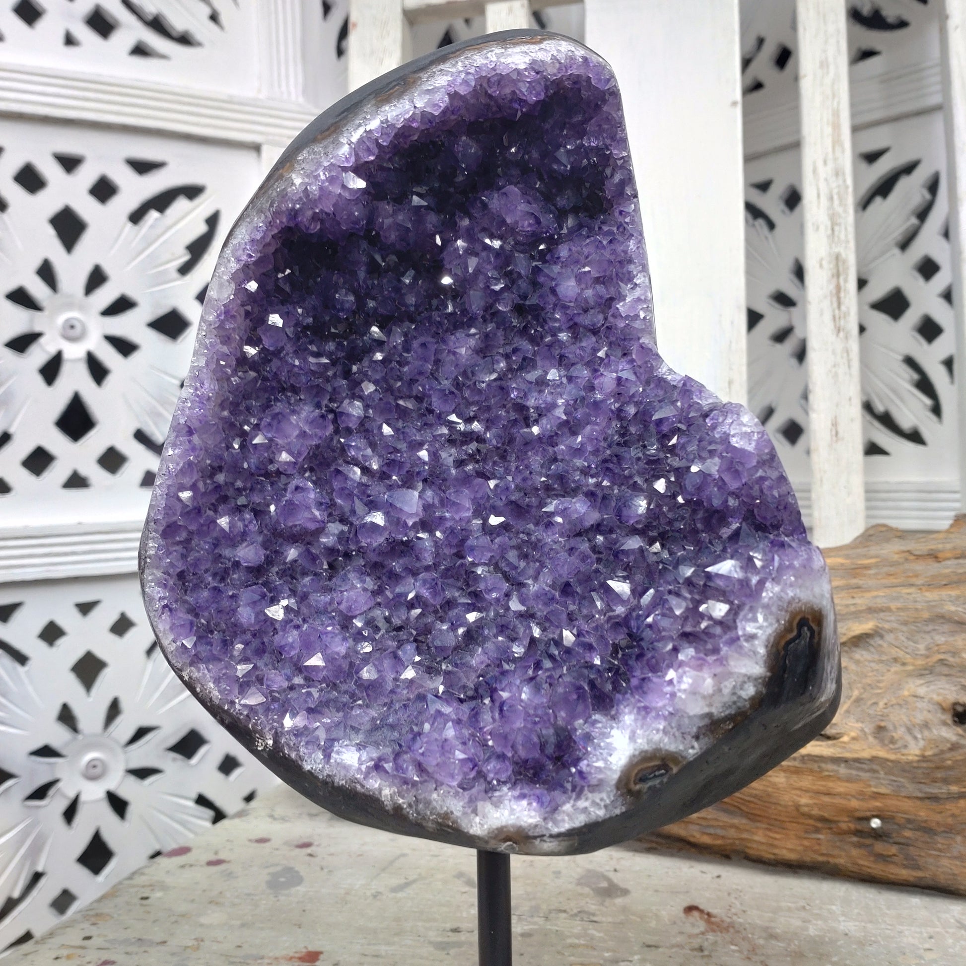 Magiskt Ametistkluster på ställ, otroligt vackert och härligt mörklila.