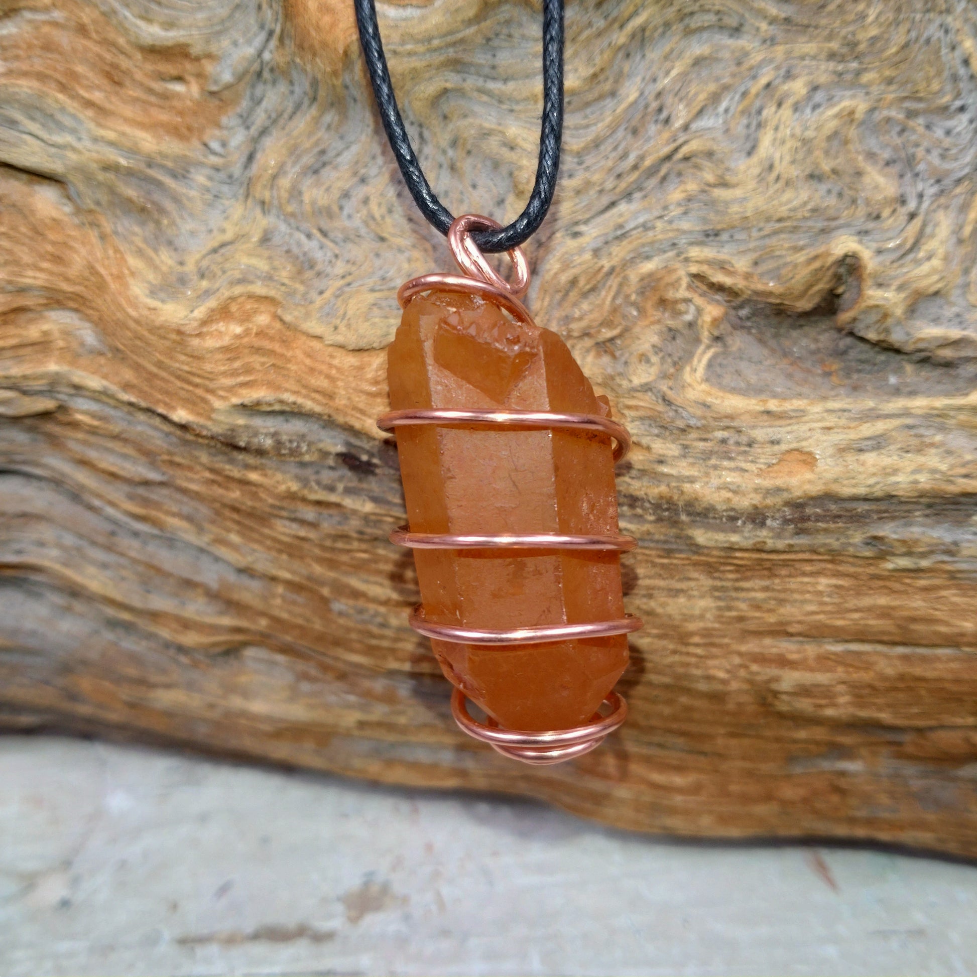 Kraftsmycke✨Halsband Tangerinkvarts virad i koppartråd.