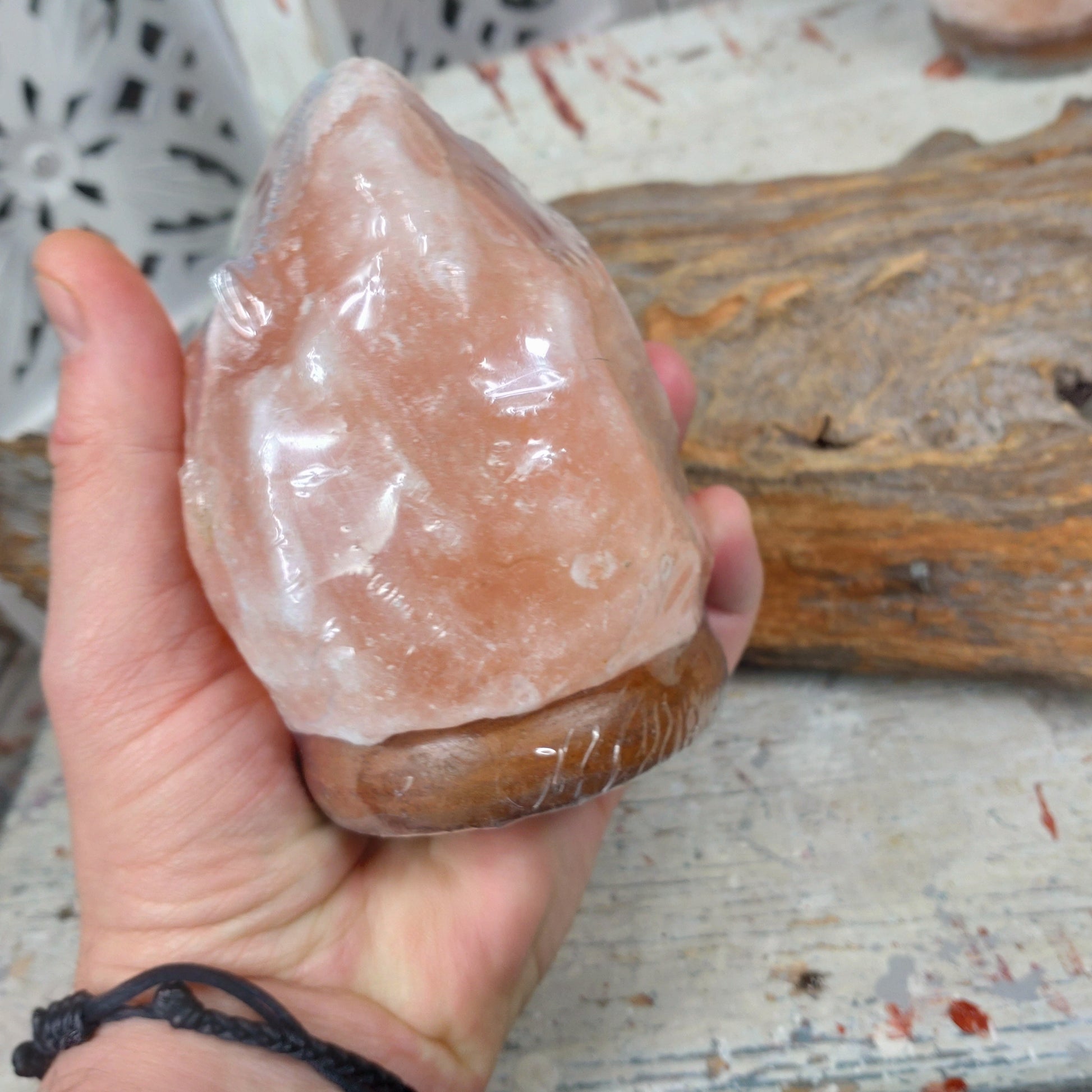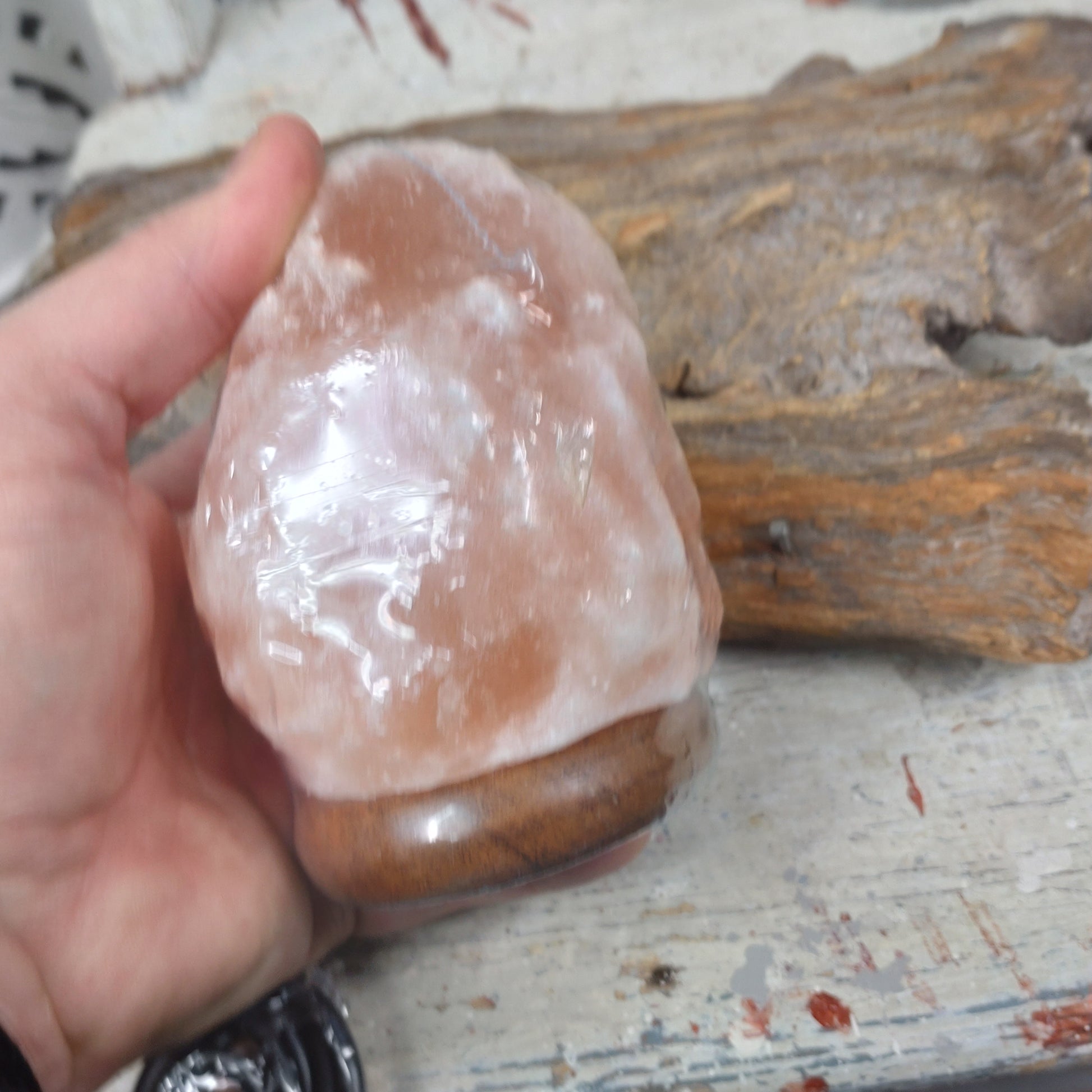 Små otroligt fina saltstens lampor ( usb ) på träfot med rinnande belysning i olika färger ger vackra variationer.