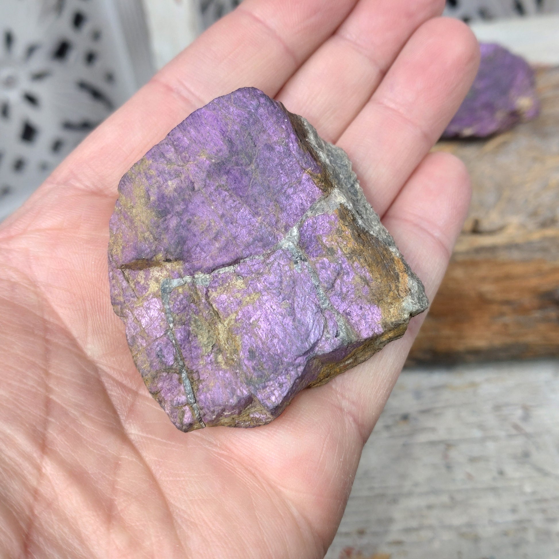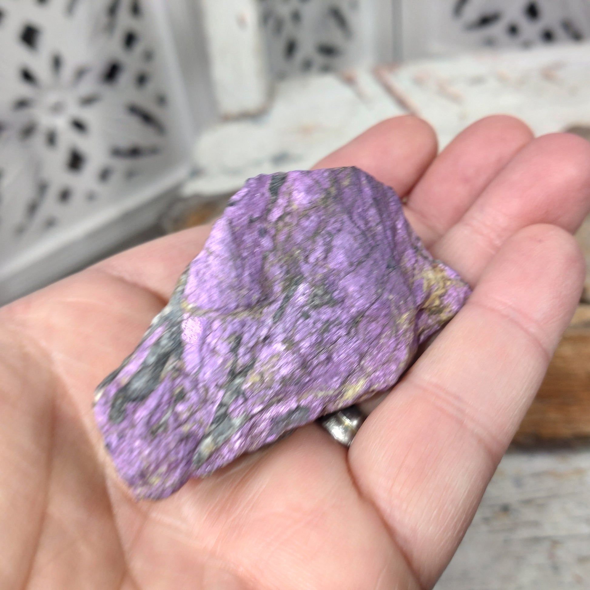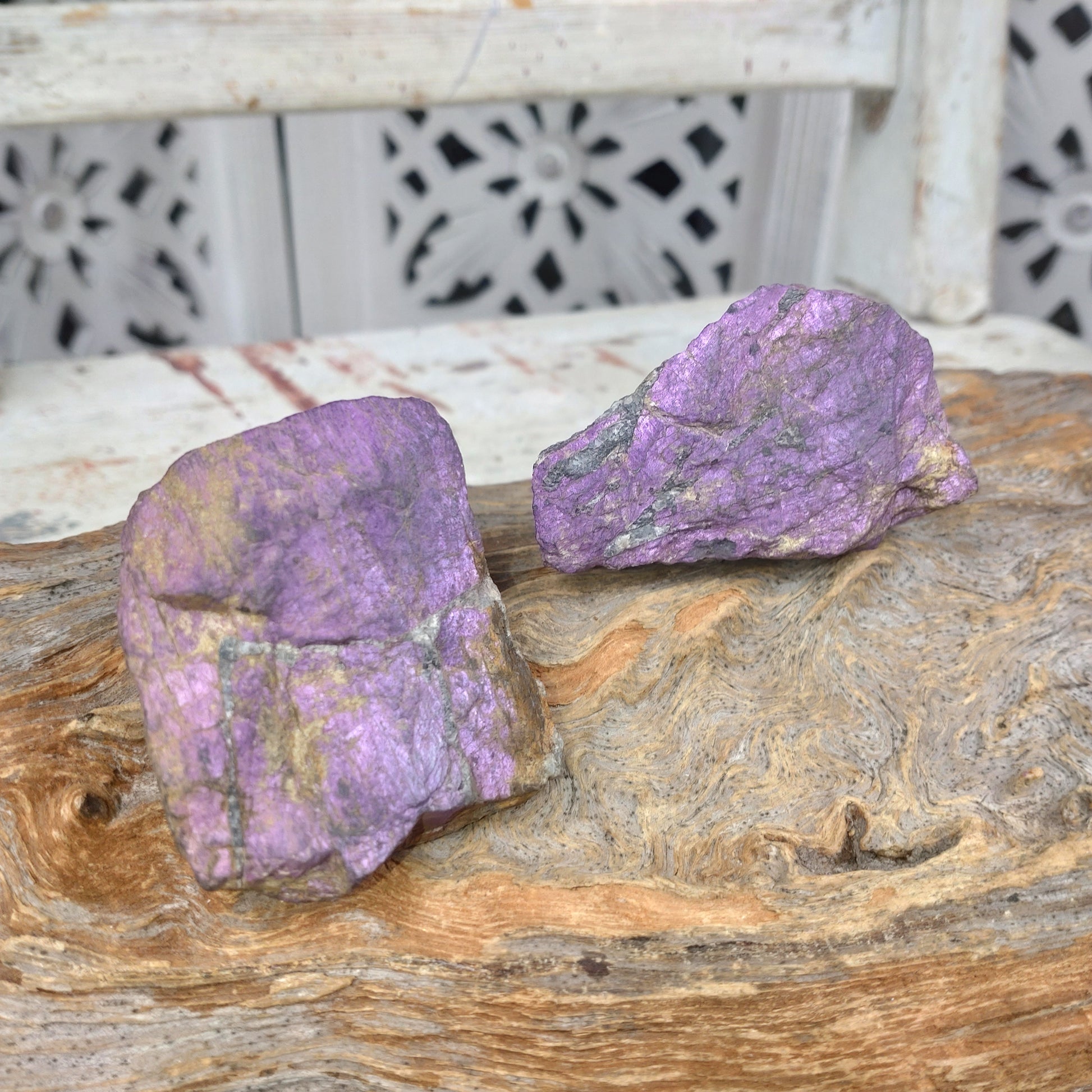 Purpurit stabiliserar kroppen och förenar den. Hjälper och visar dig vägen för att utveckla dina andliga intressen. Igångsättande samtidigt som den håller nerverna på plats, hjälper dig komma igång på ett lugnt sätt. Tar bort negativitet och rensar bland gamla mönster och skapar trygghet.