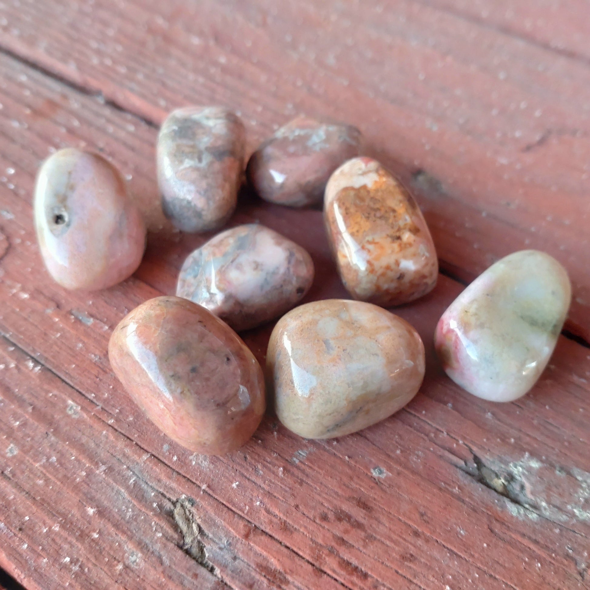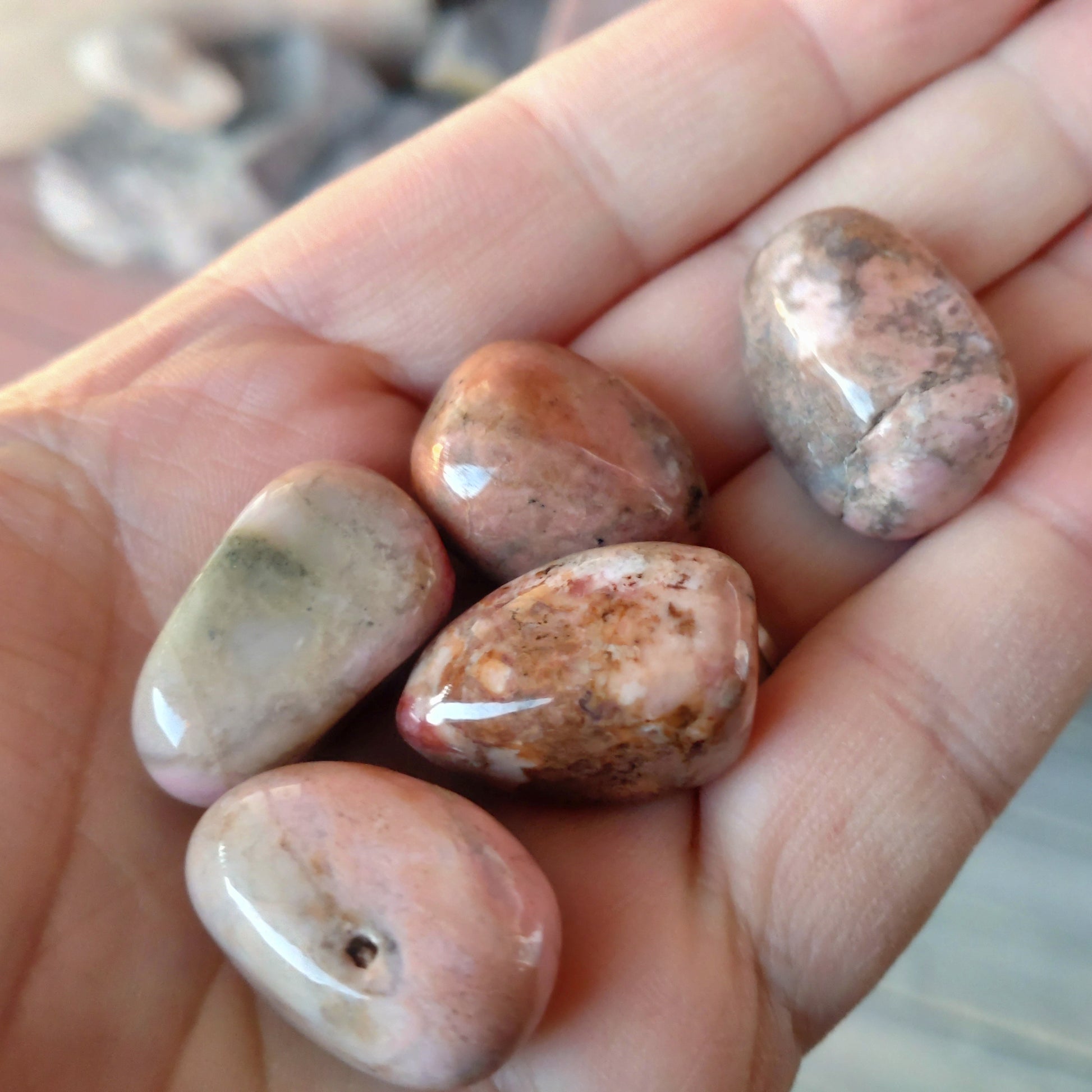 Rhodonit balanserar känslor och lugnar otålighet. Beskyddar mot negativ energier och kritik, och drar till sig kärlek.